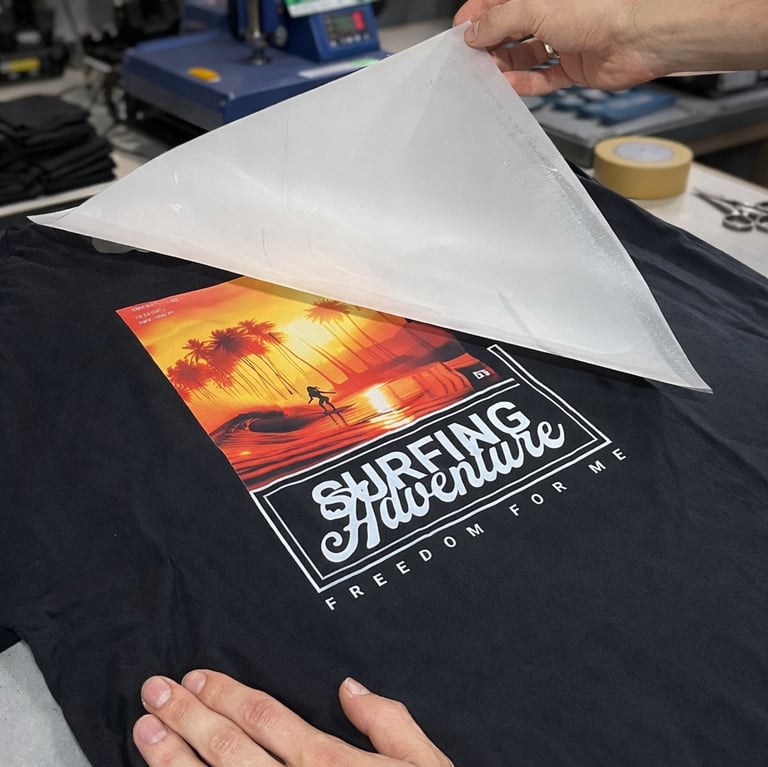 DTF (Direct to Film) é uma técnica de impressão onde a estampa é transferida para o tecido através da prensa térmica, garantindo alta qualidade, definição e agilidade.